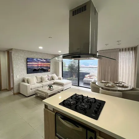 Luxury Apartment In Palmas Overlooking Medellin is located in Medellin, 6 km from the traditional Santa Fe Zoo, and pampers guests with a hot tub and a sauna.